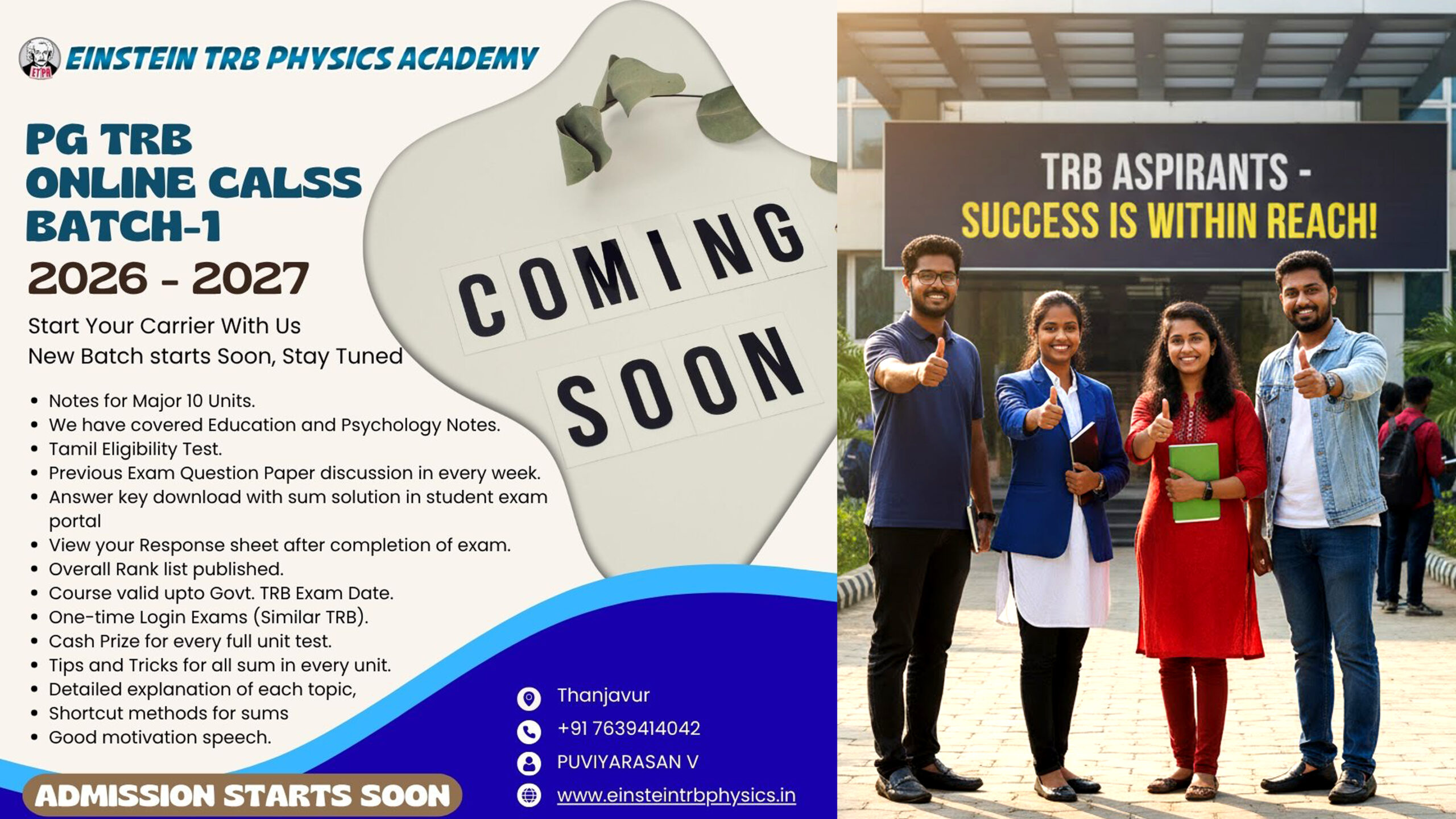 The teaching method of our academy was improved and a lot of changes were brought to the students like quality materials, shortcut tricks, every week online examination and good motivations.